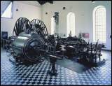 Im Maschinenhaus steht eine der ältesten Dampffördermaschinen (1887) des Reviers, die regelmäßig vorgeführt wird.